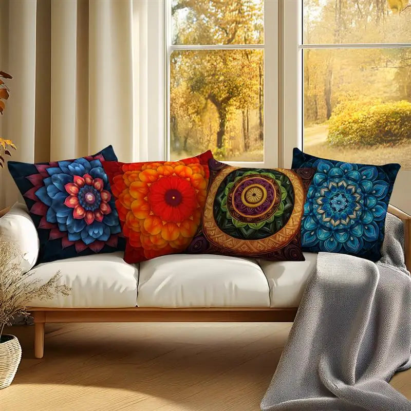 Capas de Almofada c/ Estampa Digital Colorida de Mandala // Ideais p/ Decoração de Casa // Sofá, Quarto e Carro