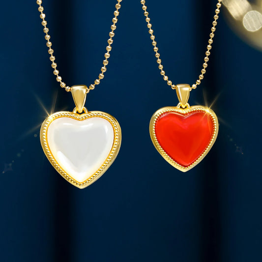Colar c/ Pingente de Coração de Ágata Natural SZJINAO // 100% Ouro Real 18k au750 Puro Original // Jóias de Ouro com Certificado