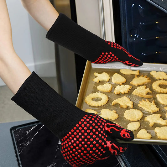 Luvas de Silicone Resistentes ao Calor // Luvas p/ Churrasco // Luvas de Cozinha para Forno // Luvas à Prova de Fogo e Antiderrapantes de 500 a 800 graus