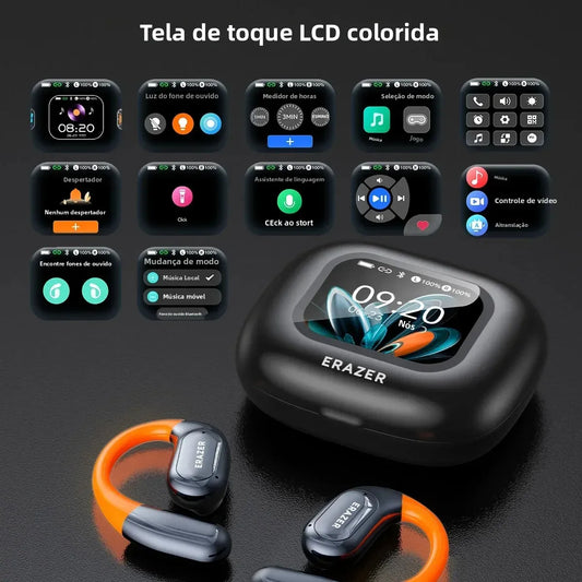ERAZER XP15 Wireless Headphones Bluetooth 5.4 AI Translator Earbuds Glowing Earhook Upgraded LCD Touchscreen ENC Noise Reduction
