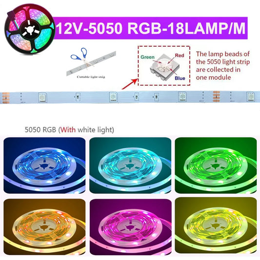 Fita LED RGB 5050 c/ Controle WiFi Inteligente // Fita LED RGB 220V p/ Decoração de Parede de Quarto