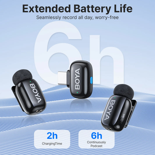 Microfone de Lapela s/ Fio BOYA Mini // Para iPhone 15/16 Android // Dispositivos USB-C p/ Transmissão ao Vivo // Gravação de Vídeo e Vlog