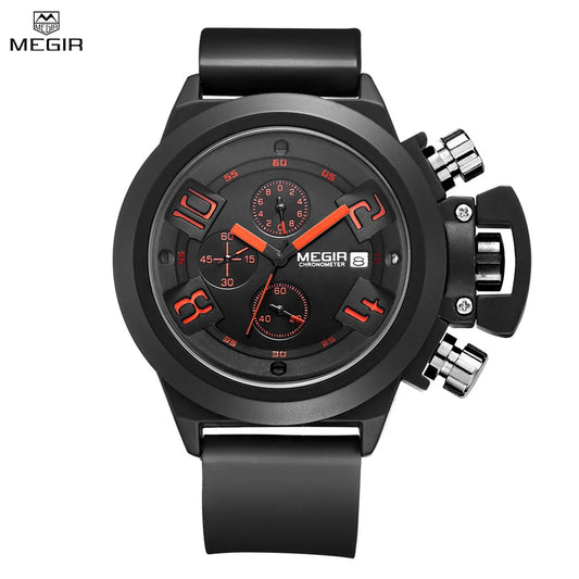 Relógios Masculinos de Luxo MEGIR // Moda Esporte Militar // Cronógrafo / Data Luminosa / Quartzo // Relógio de Pulso Grande Dial