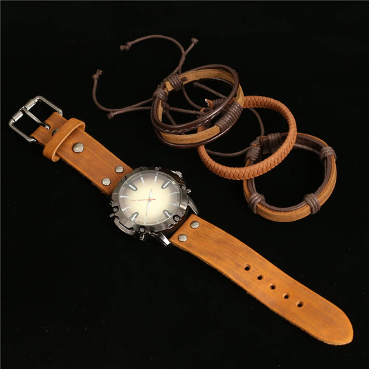 Relógios de Pulso para Homens c/ Pulseiras de Couro WESTBULL // Masculino Quartzo Punk