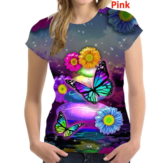 Camisa HARAJUKU 2024 c/ Impressão de Borboleta t-shirts // Moda Manga Curta Para Mulheres