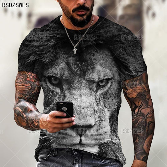 Camisa Masculina Verão Casual Moda Animal Leão Gráfico 3d // O-Pescoço // Manga Curta Oversized Masculino // Lindas Camisetas Streetwear Moda 3D. Lindas e Exclusivas!!!