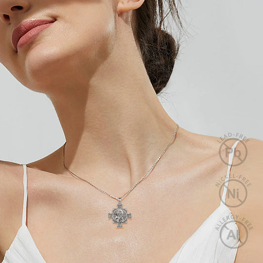 Jóias Religiosas Eudora 925 Prata Esterlina // Cruz de San Benedict Pingente // Medalha de São Bento // Colar Unissex Vintage