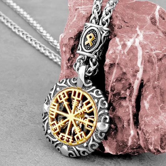 Novo Colar Amuleto Forças da Natureza Viking, Design Criativo de Bússola de Runa // Pingente de Aço Inoxidável Vintage