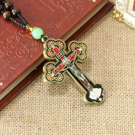 Colar Santo Graal de Jesus c/ Cruz Católica HTISOK // Caixa Sagrada // Rosário // Materiais Litúrgicos Banhados a Ouro