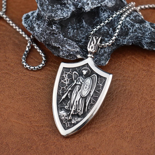 Colar Escudo de São Miguel Arcanjo // Novo Retro para Presente // De Aço Inoxidável // Pingente Criativo de São Miguel // Proteção!!!