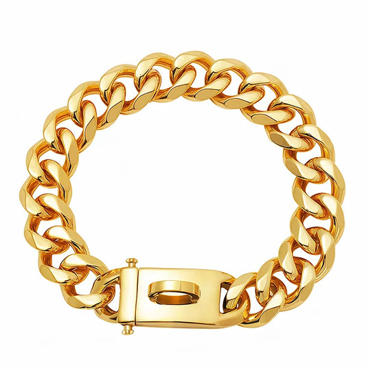 Coleira Dourada de Aço Inoxidável p/ Cães // Com 19 mm de Largura // Ideal p/ Cães de Porte Médio e Grande // Como Bulldog Francês, Labrador Retriever, etc