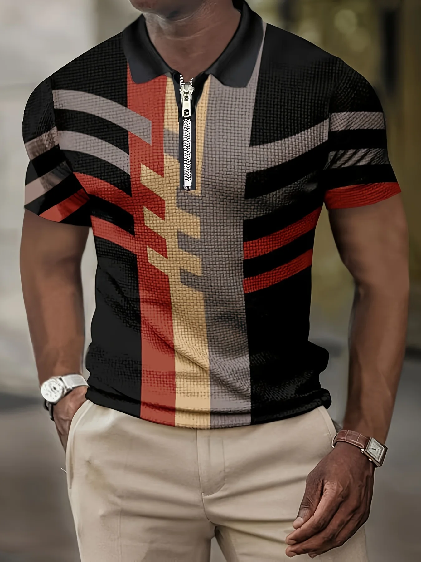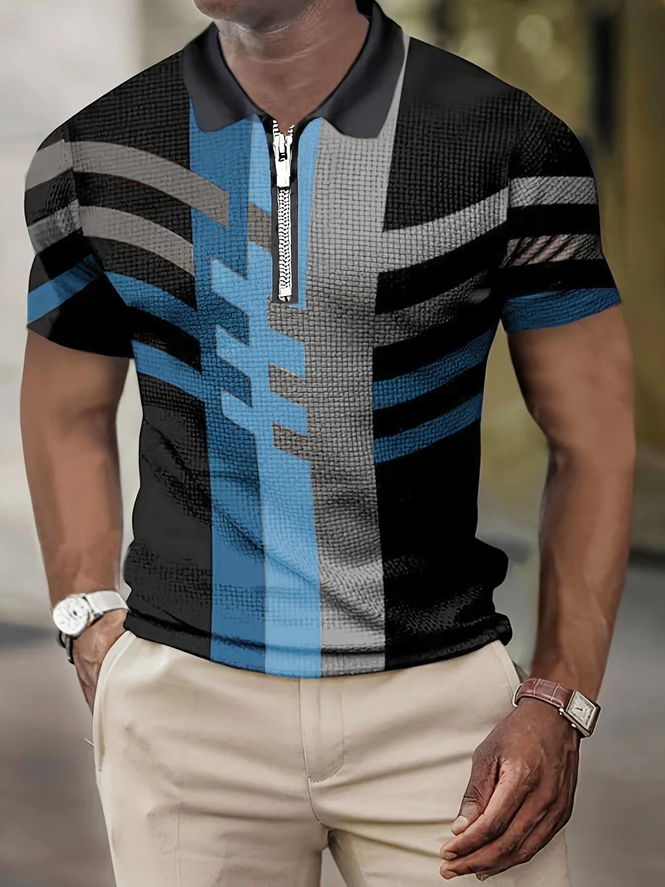 Camisa Polo Masculina de Manga Curta // Verão, Retrô, Listrada, 3D, c/ Zíper, Lapela, Slim, 2025