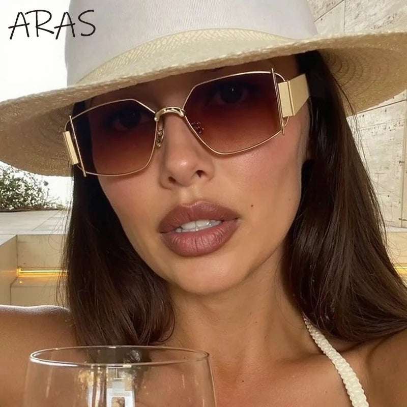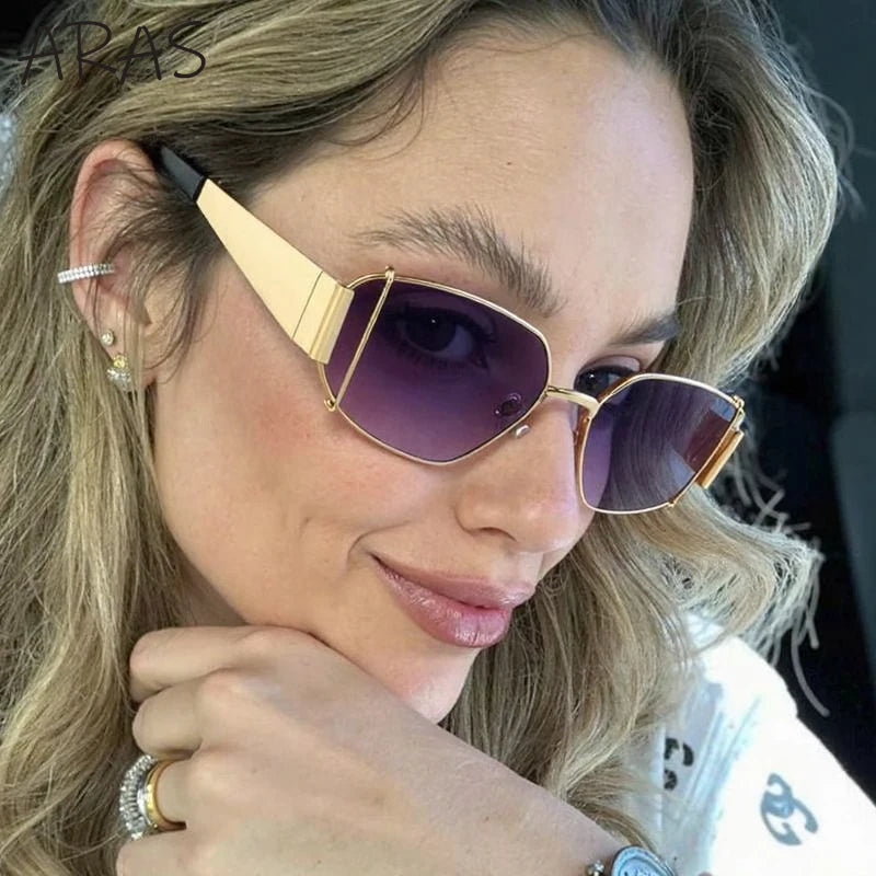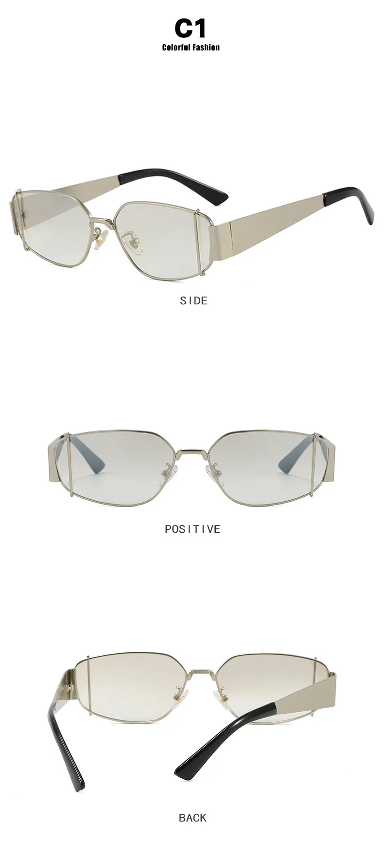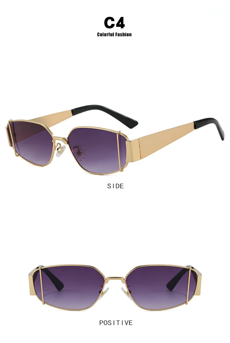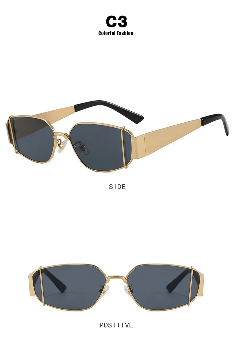 Óculos de Sol Retangulares Punk da Moda Femininos 2025 // Armação de Metal Irregular de Marca de Luxo // Óculos de Sol Sexy Vintage p/ Viagem