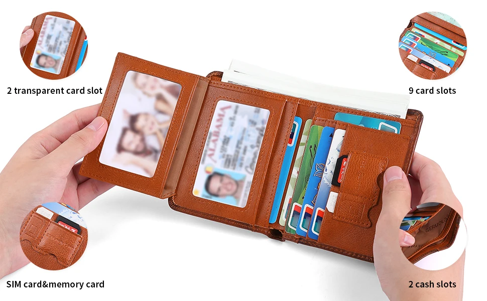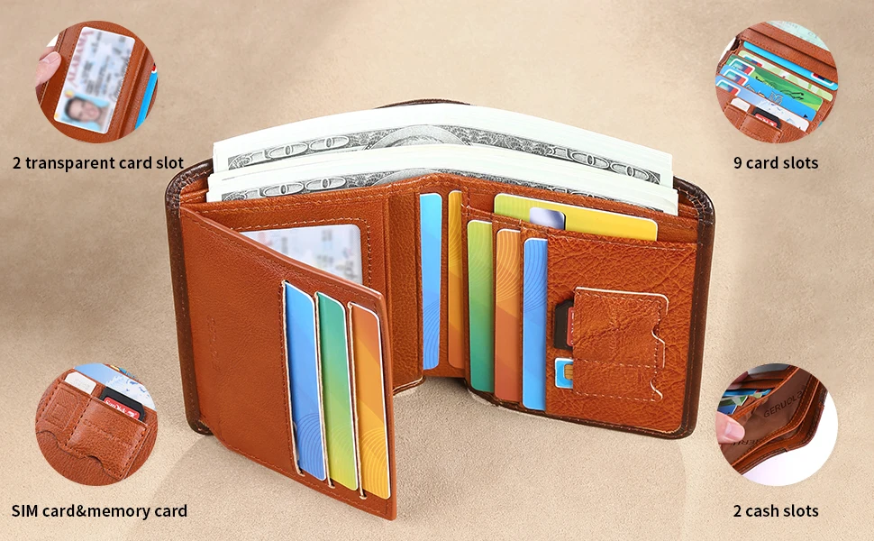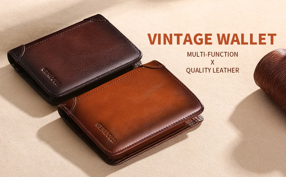 Carteira GERUOLA Slim RFID Blindada em Couro Genuíno para Homens // Porta-Identidade e Cartão de Crédito // Multifuncional // Varias Cores c/ Enfeites