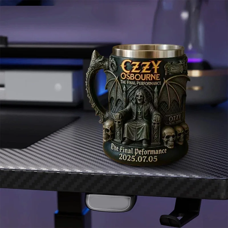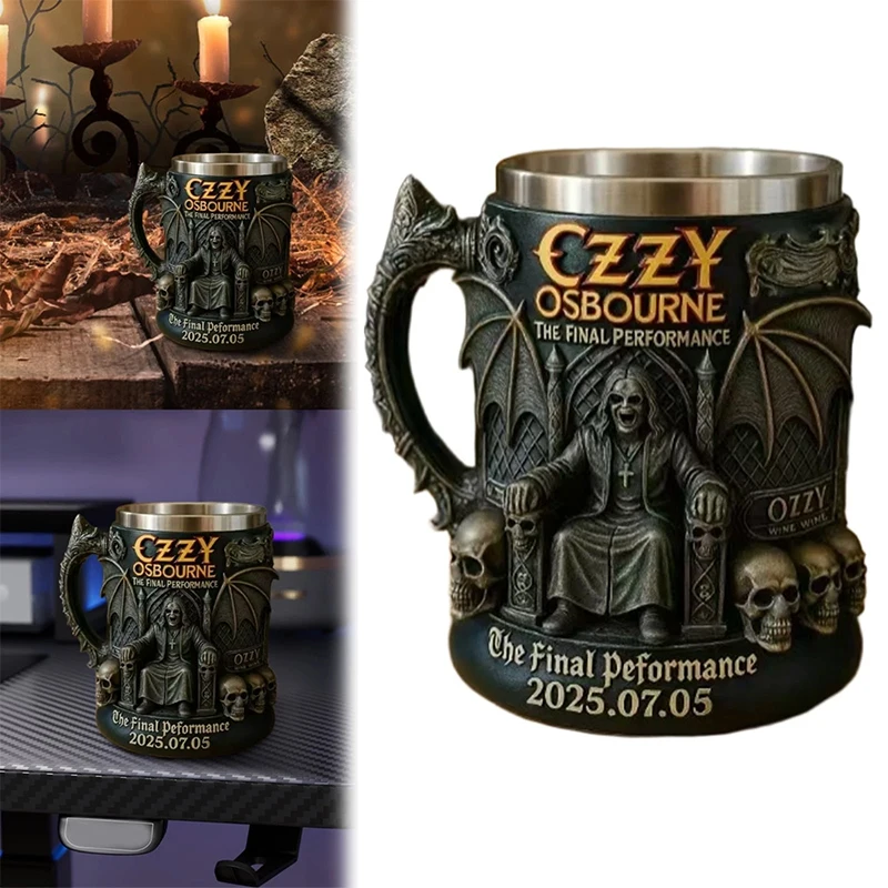 Caneca Comemorativa de Halloween 3D Ozzy Osbourne // Caveira de Aço Inoxidável // Copo de Água // Caneca de Cerveja // Xícara de Café