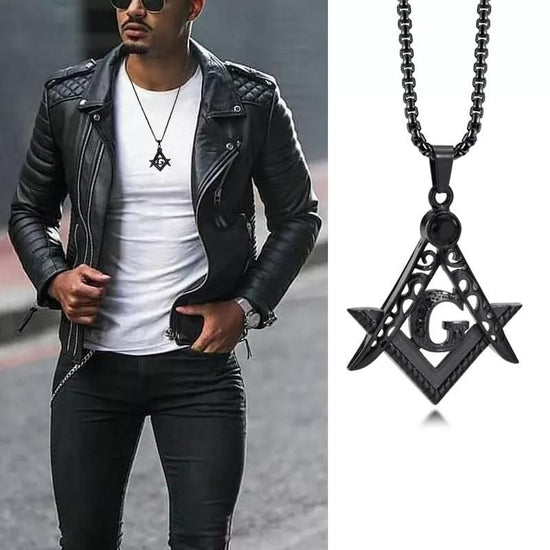 Colar MPRAINBOW c/ Símbolo Maçônico G de Aço Inoxidável para Homens // Com Crista da Maçonaria // Atraia Sorte e Fortuna com Este lindo Pingente Maçônico!!!