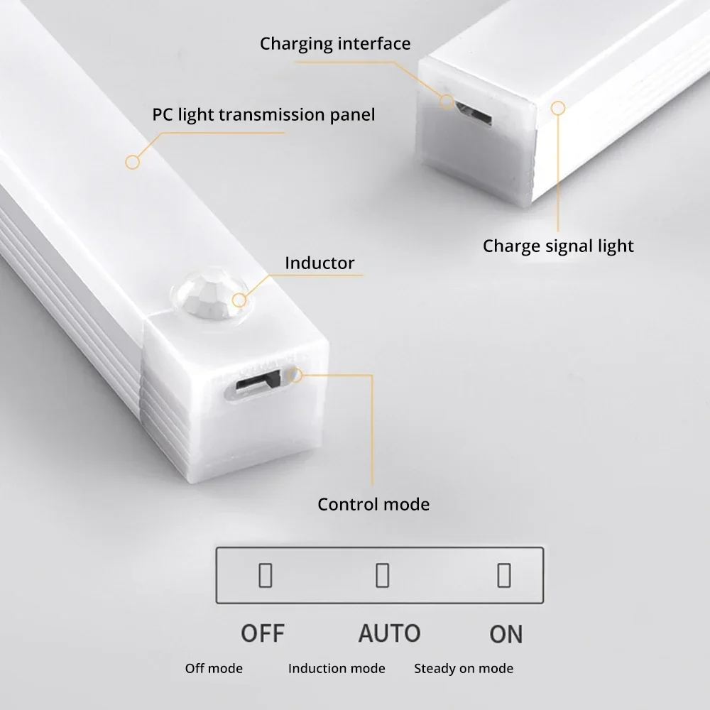 Luzes Noturnas com Sensor de Movimento // Lâmpada LED Sem Fio // Recarregável por USB // Magnética // Para: Guarda-Roupas, Armários, Cozinha, Corredor, etc.