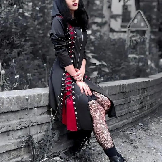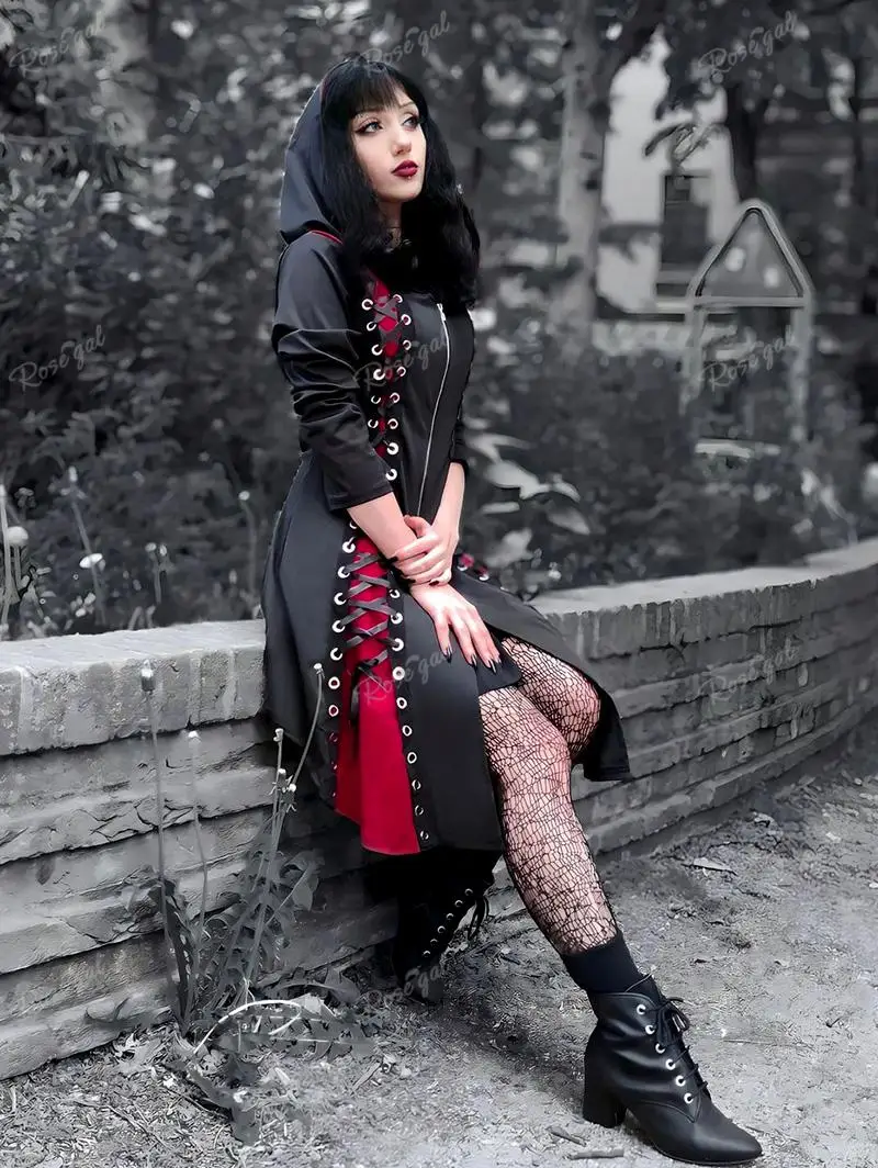 Rose Gal Gótico com Capuz Rendas e Ilhós Colorblock // Casaco de Mangas Compridas Assimétrico c/ Zíper Sweatshirts para Mulheres // Moletons de Inverno pra Voçê que tem Estilo!!!