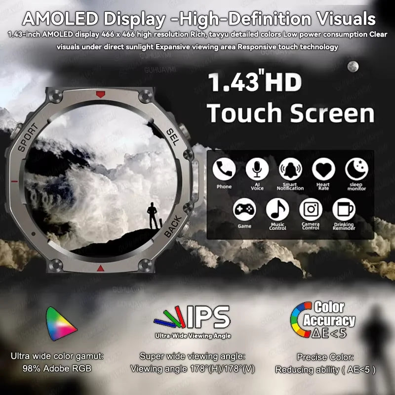 Inteligente Bússola dinâmica: Tela AMOLED de 1,43 polegadas - Visuais de