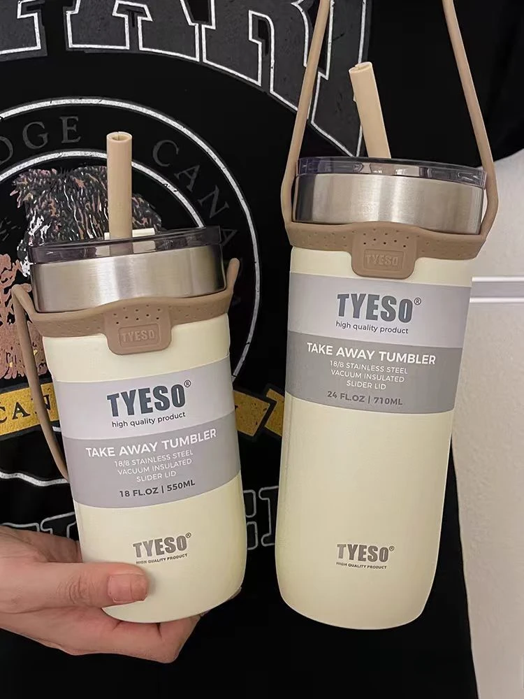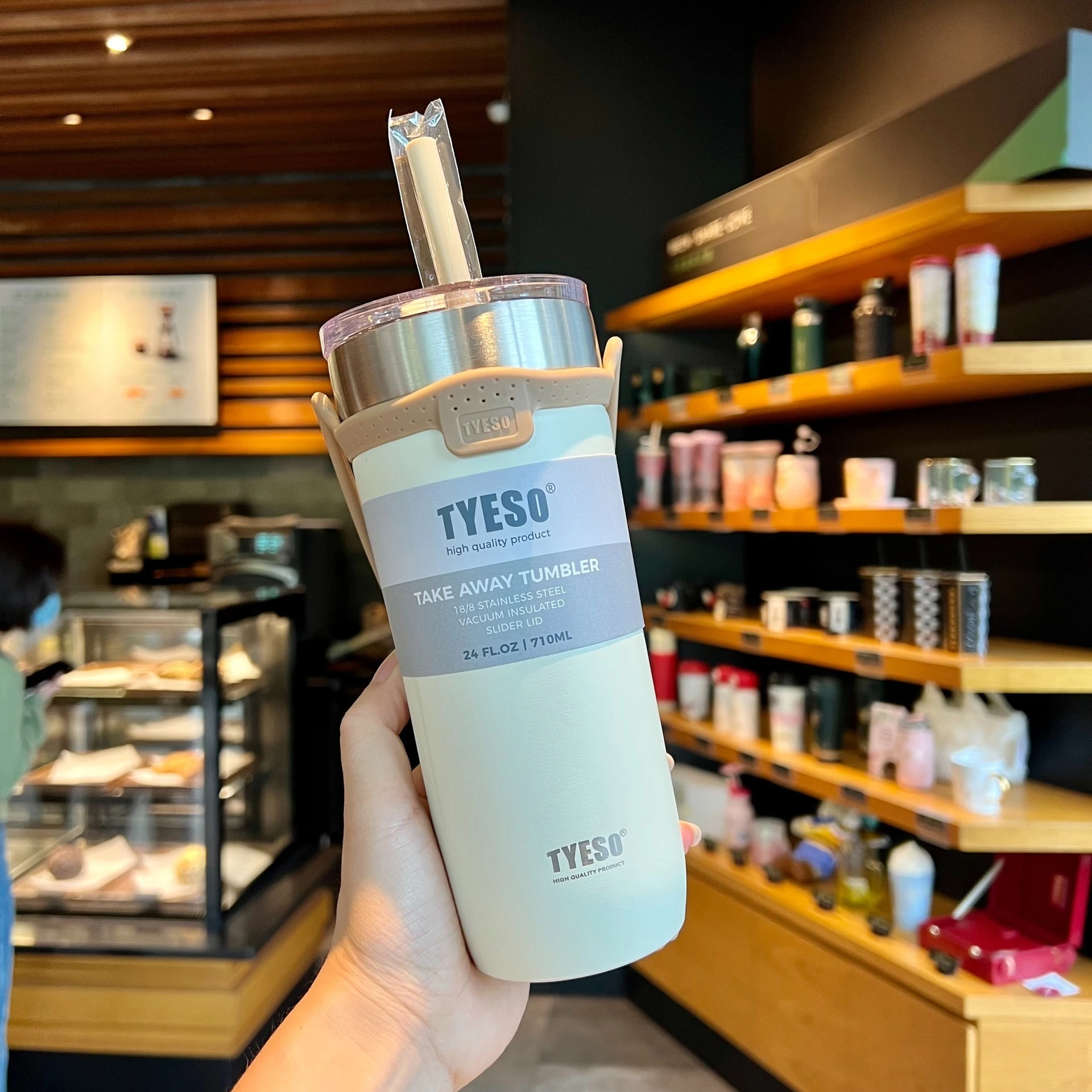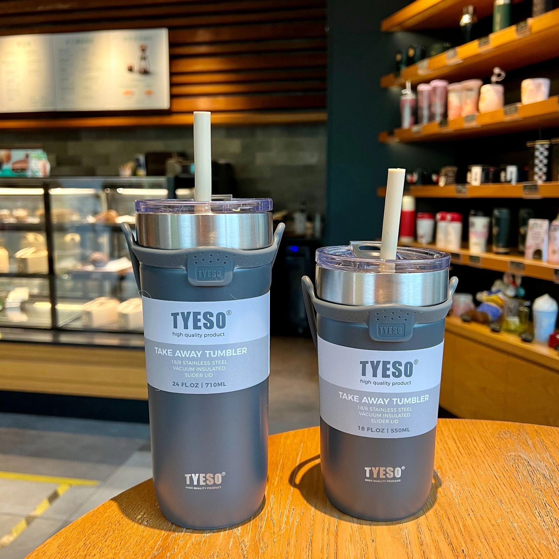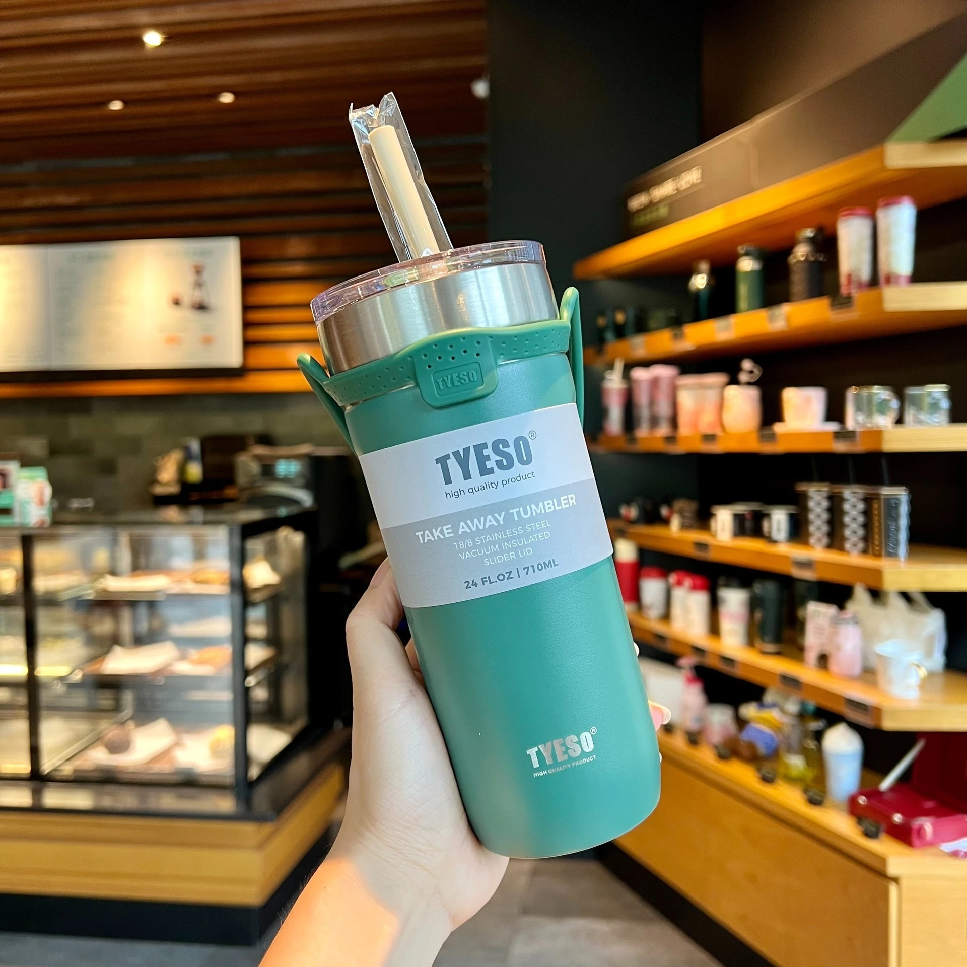Caneca de Café de Aço Inoxidável Tyeso 550/710ml c/ Canudo // Garrafa de Água p/ Carro // Garrafa Térmica a Vácuo // Copo Térmico // Garrafa Térmica Dupla