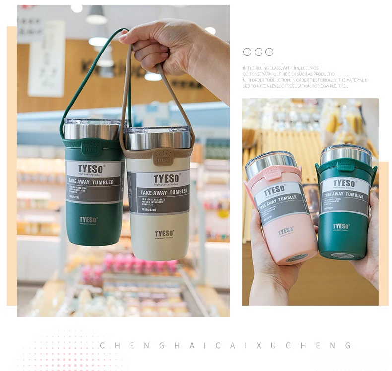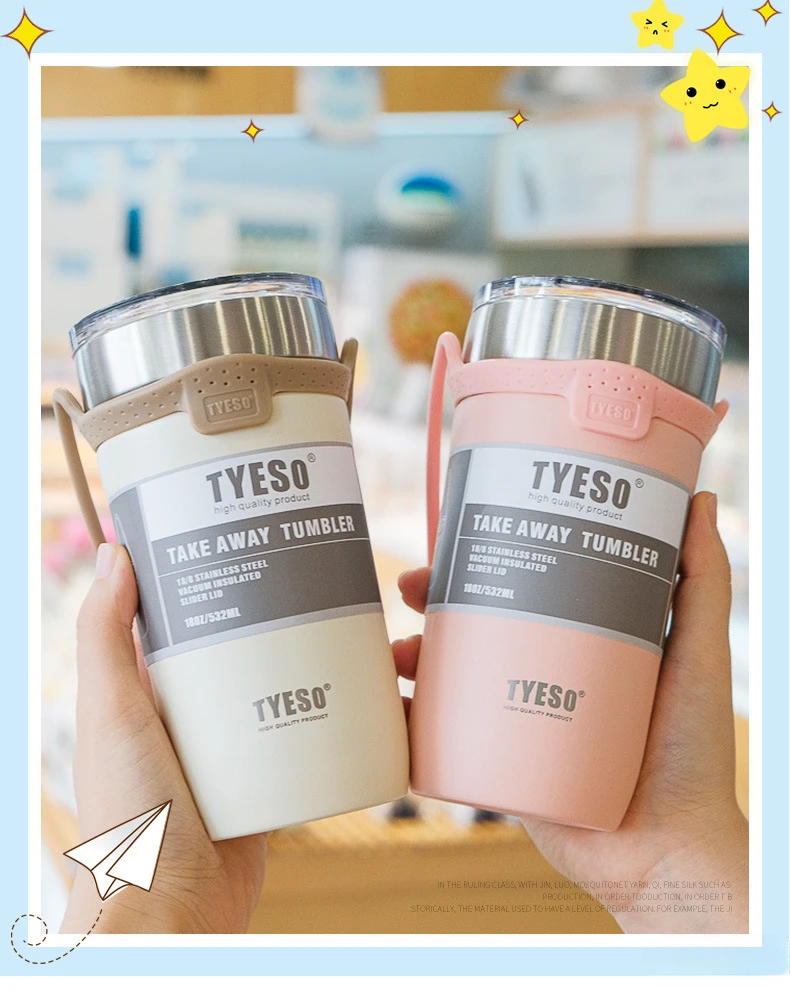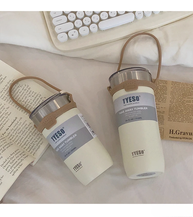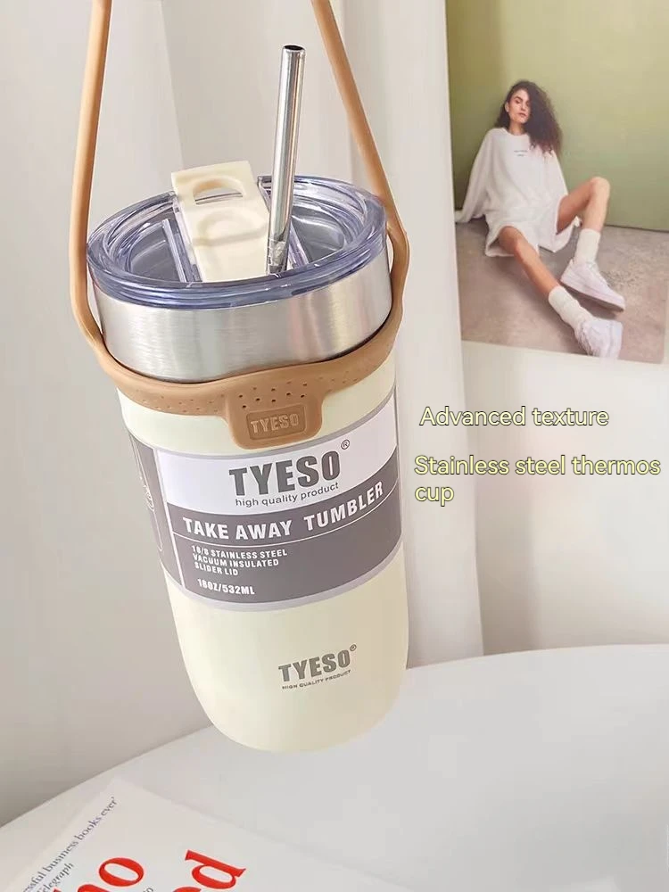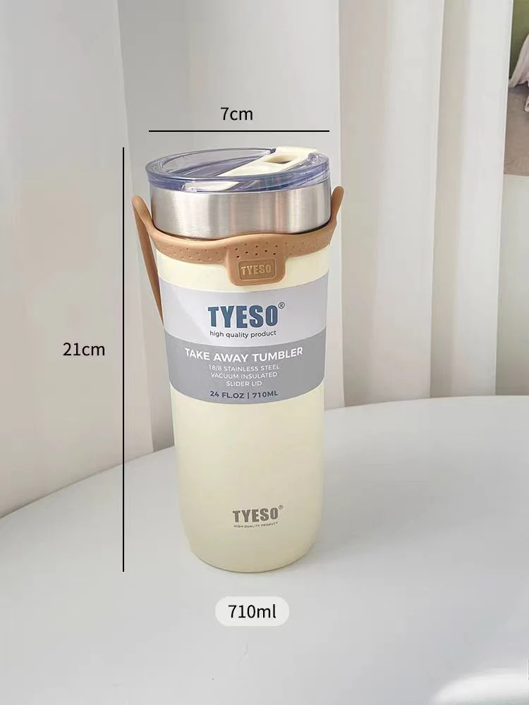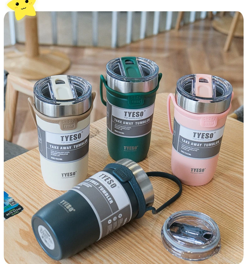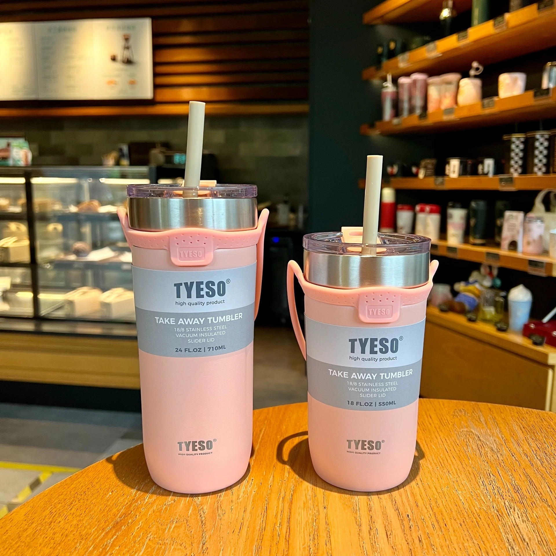 Caneca de Café de Aço Inoxidável Tyeso 550/710ml c/ Canudo // Garrafa de Água p/ Carro // Garrafa Térmica a Vácuo // Copo Térmico // Garrafa Térmica Dupla