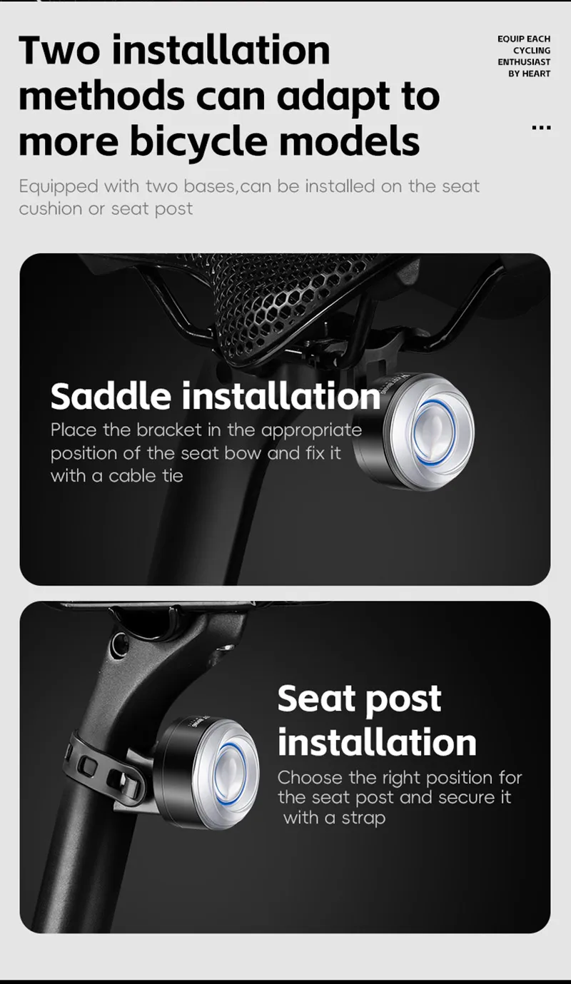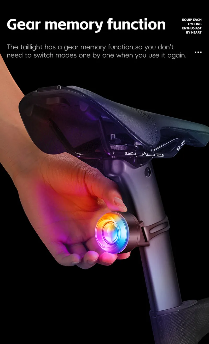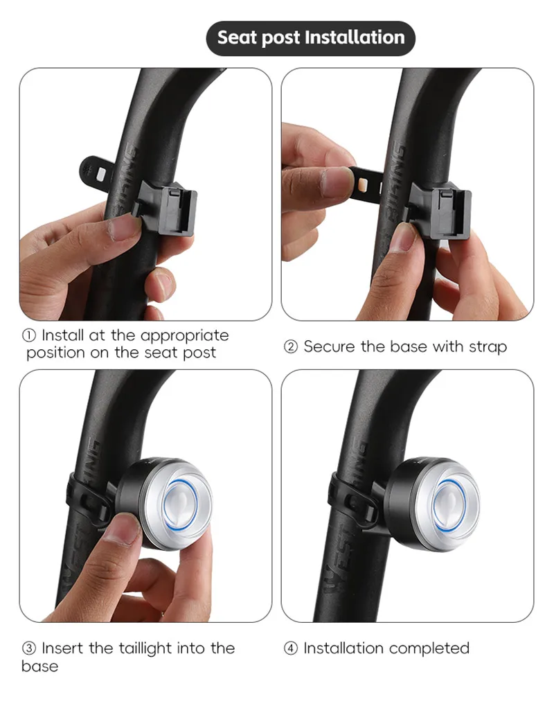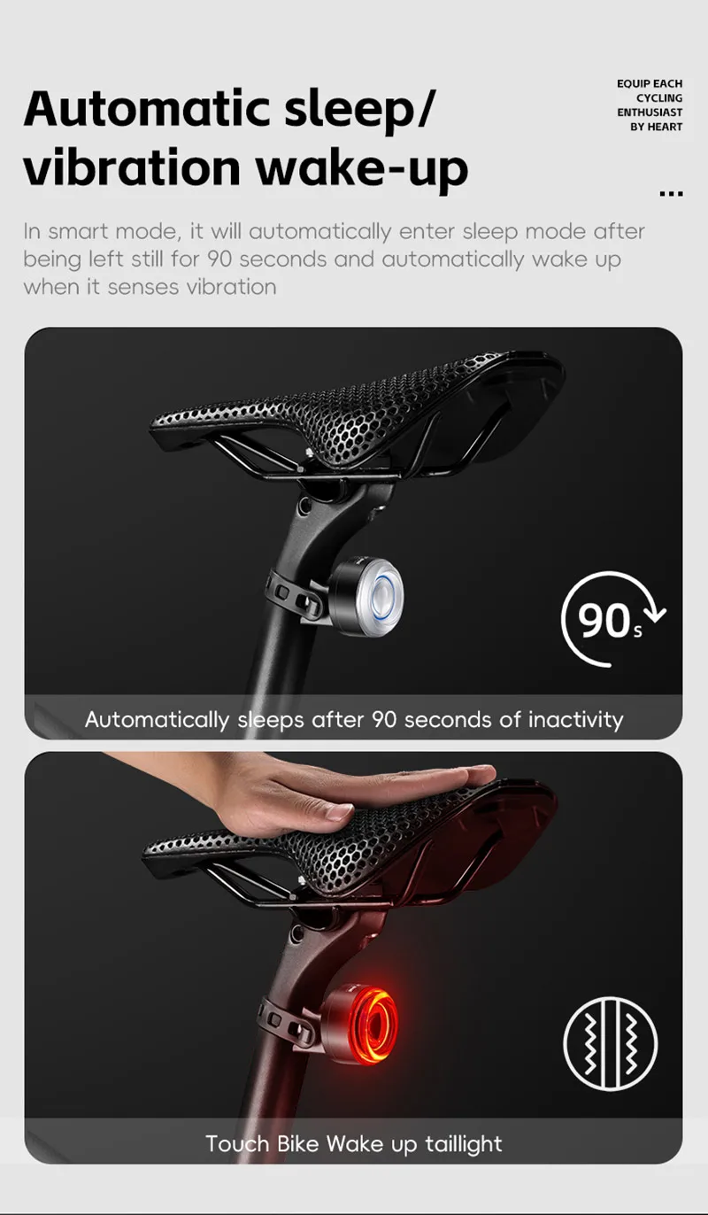 No modo inteligente, o sensor de luz ambiente integrado monitora a luz do ambiente o tempo todo, acende automaticamente em luz escura e desliga automaticamente em luz forte. Ao entrar em um túnel ou caverna, você não precisa se distrair para operar as luzes traseiras.
