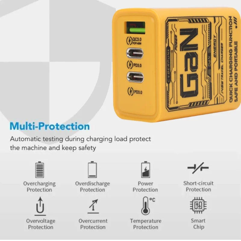 O produto que você comprou inclui um carregador 145 Mech Wind de três portas, fornecido soluções de carregamento confiáveis e eficientes para todos os seus dispositivos a qualquer momento.