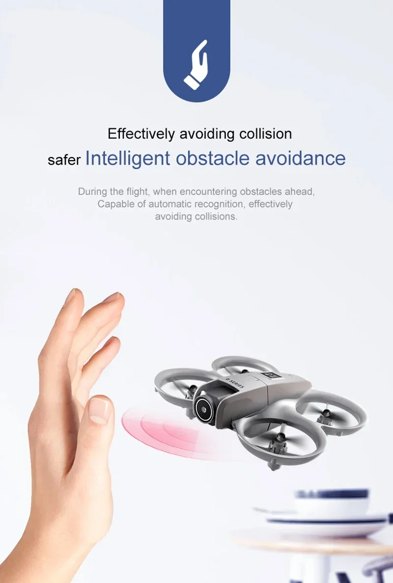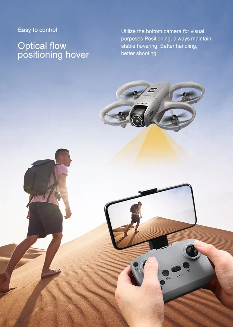 2: O drone possui modo de manutenção de altitude fixa, sensor triplo integrado para evitar obstáculos, lente ajustável eletricamente e pode atingir 180° de voo para cima, posicionamento de ponto fixo com fluxo óptico e voo estável.