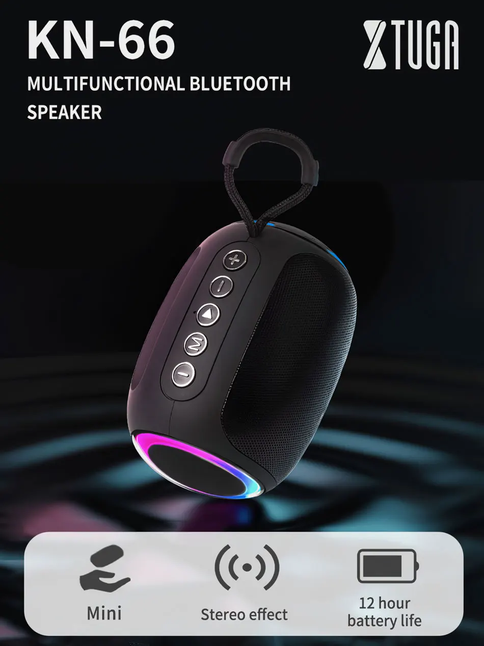 Caixa de Som Bluetooth Portátil Sem Fio p/ Esportes ao Ar Livre // XTUGA RGB Reprodutor de Áudio Portátil para Música // USB, Bluetooth, p/ Festas e Rádio