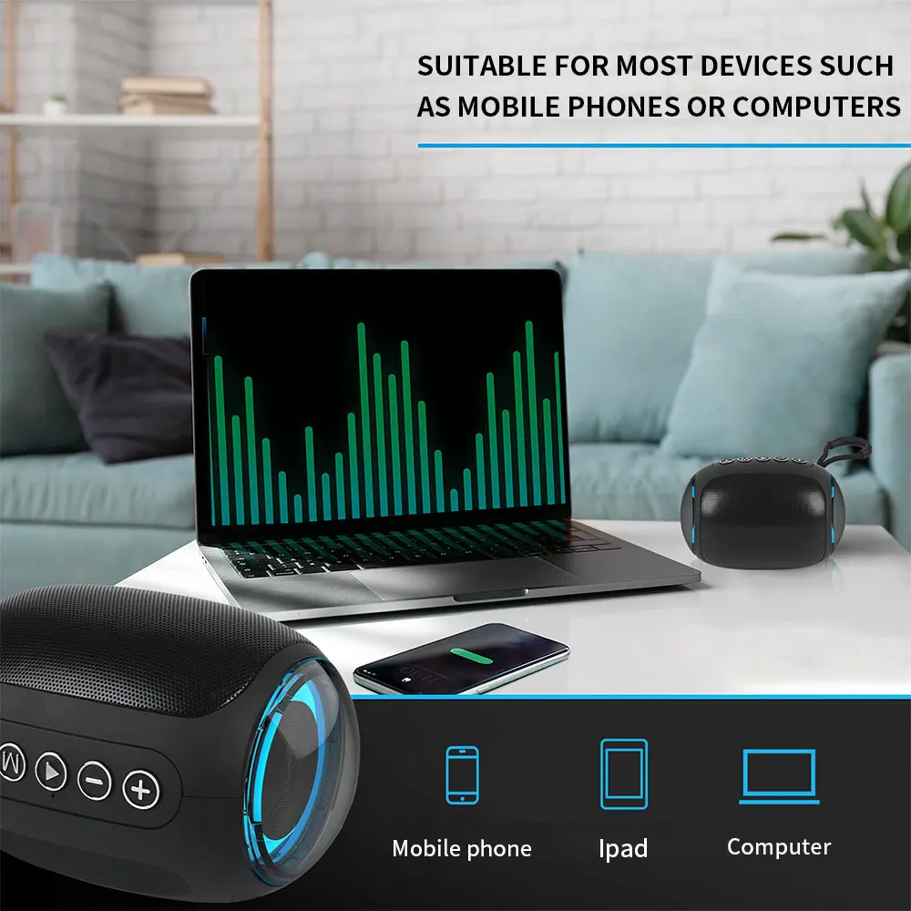 5. Bluetooth 5.0: Bluetooth 5.0 recém-atualizado, que proporciona transmissão rápida e estável, além de áudio nítido e de alta qualidade.