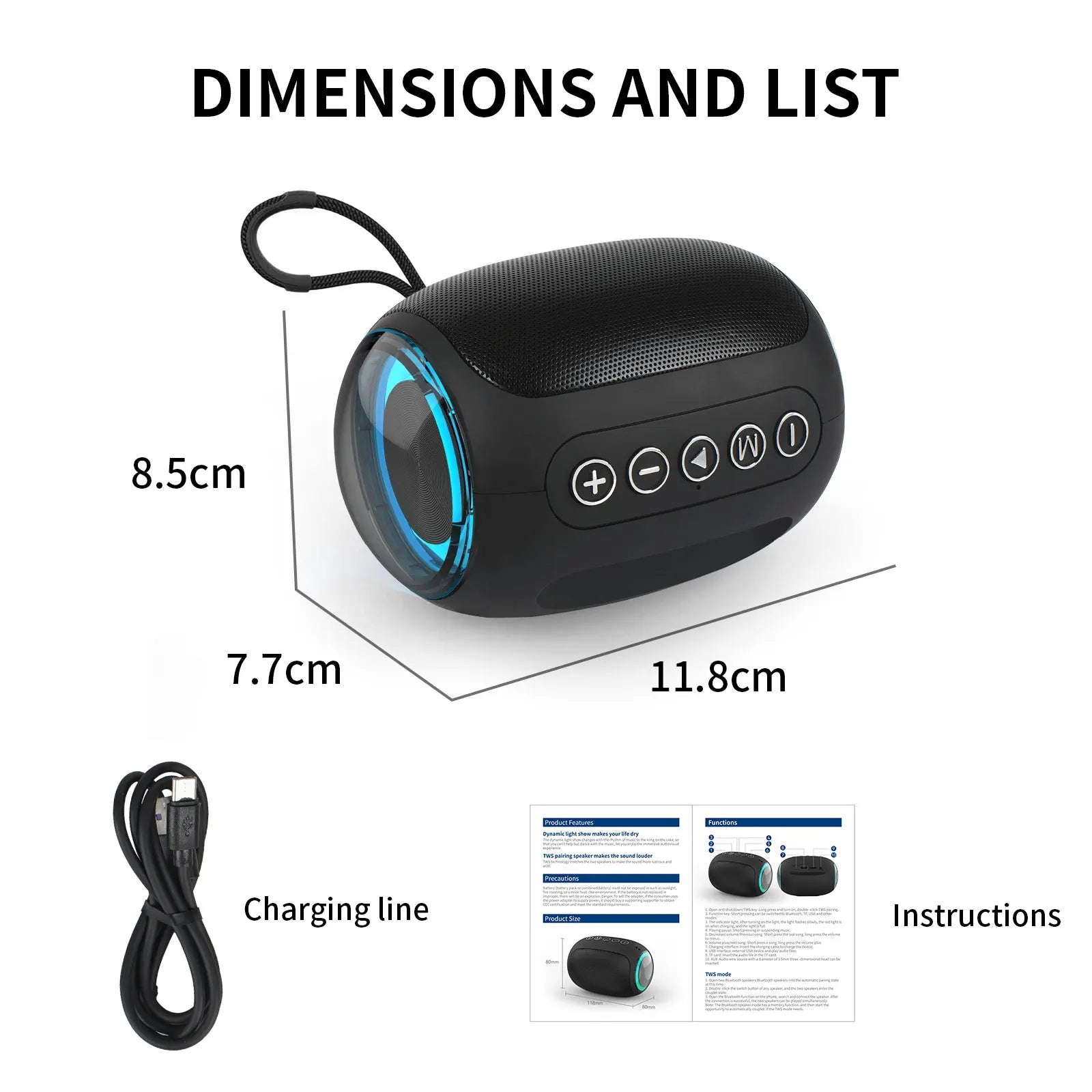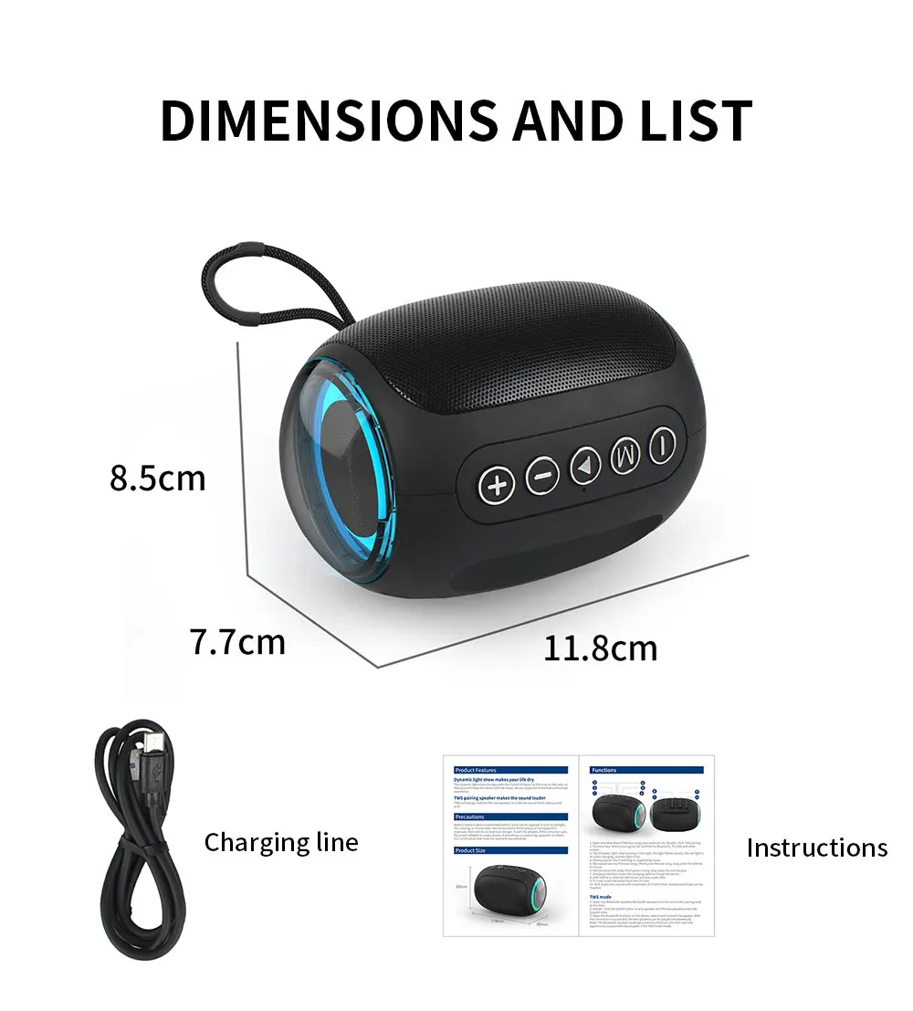 6. Pequeno e portátil: Com dimensões de 118 * 77 * 85 mm e peso de apenas 0,4 kg, pode ser transportado facilmente e usado tanto em casa quanto ao ar livre.